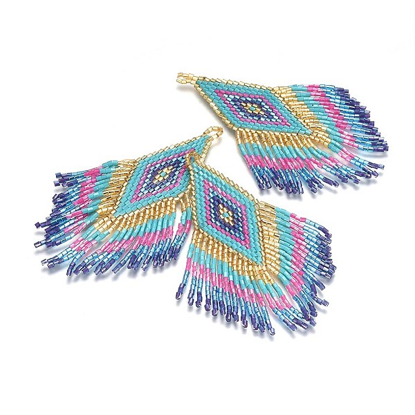 PandaHall Handmade Japanese Seed Beads Tassels Pendants, Loom Pattern, Rhombus, Colorful, 66~67x26x2mm, Hole: 2.5~3mm Glass Rhombus Price: $10.03 | PandaHall