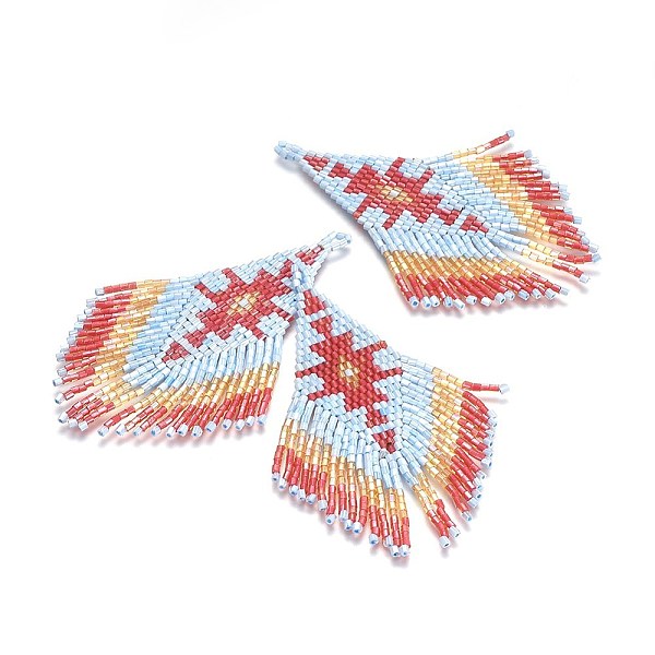 PandaHall Handmade Japanese Seed Beads Tassels Pendants, with Japan Import Thread, Loom Pattern, Rhombus, Red, 87~89x26x2mm, Hole: 1.5mm... Price: $11.7 | PandaHall