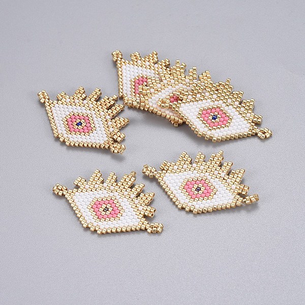 PandaHall Handmade Japanese Seed Beads Links, with Japan Import Thread, Loom Pattern, Evil Eye, Colorful, 22.5~23x33~34x2mm, Hole: 2mm Glass... Price: $1.5 | PandaHall