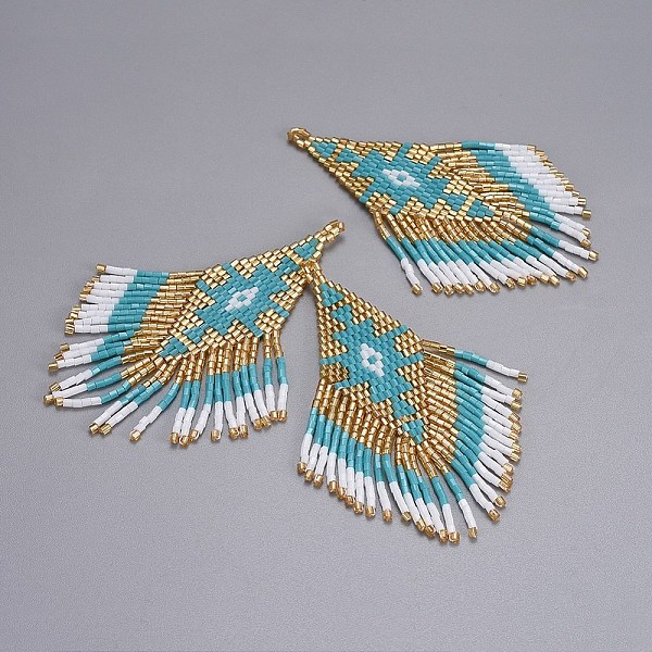 PandaHall Handmade Japanese Seed Beads Tassels Pendants, with Japan Import Thread, Loom Pattern, Rhombus, Sky Blue, 87~89x26x2mm, Hole... Price: $2.33 | PandaHall