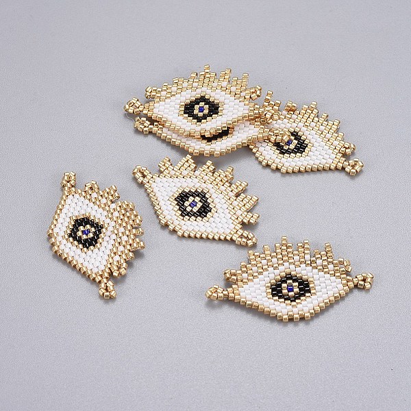 PandaHall Handmade MIYUKI Japanese Seed Loom Pattern Seed Beads, Rectangle with Evil Eye Pendants, Mixed Color, 20x15x1.5mm, Hole: 1~4x1~3mm... Price: $5.83 | PandaHall