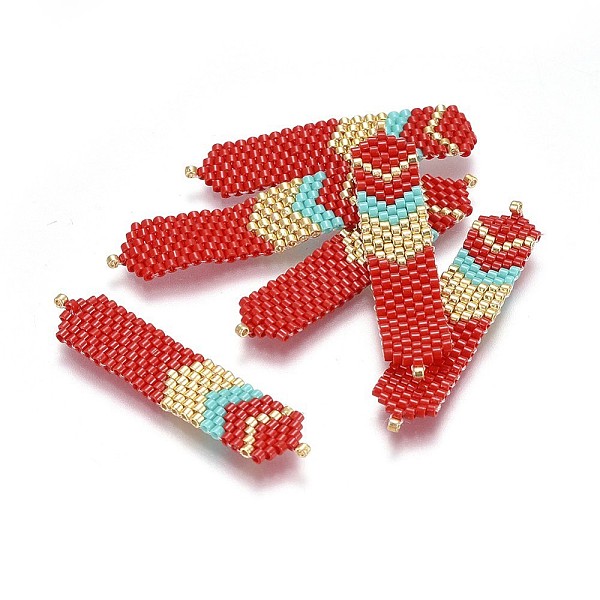 PandaHall Handmade Japanese Seed Beads Links, with Japan Import Thread, Loom Pattern, Rectangle, Red, 45~46x10x2mm, Hole: 0.6mm Glass... Price: $14.67 | PandaHall