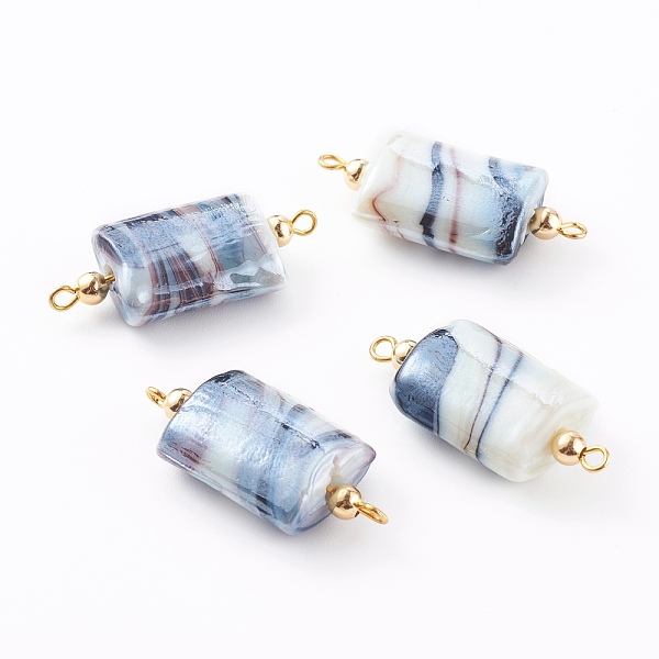PandaHall Handmade Lampwork Pearlized beads Links Connectors, with Iron Loops, Rectangle, Golden, 33.5~35x15.5~16.5x9~9.5mm, Hole: 1.8mm... Price: $10.88 | PandaHall