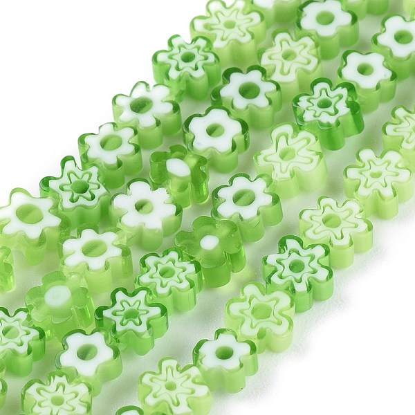 PandaHall Handmade Millefiori Glass Bead Strands, Flower, Lime Green, 5.5~8x2.5mm, Hole: 1mm, about 64~67pcs/strand, 15.75 inch~16.34 inch... Price: $19.58 | PandaHall