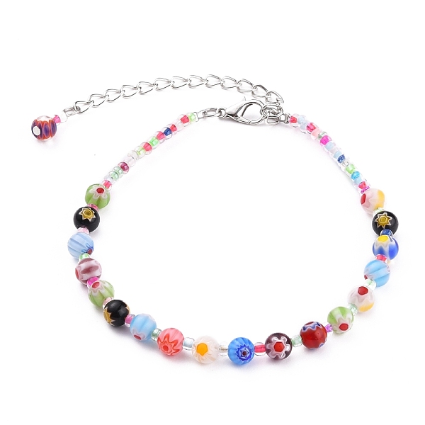 PandaHall Handmade Millefiori Glass Beads Anklets, with Glass Seed Beads and Zinc Alloy Lobster Claw Clasps, Colorful, 9-1/4 inch(23.5cm)... Price: $30.24 | PandaHall