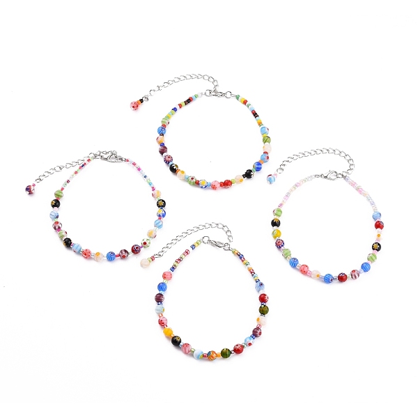 PandaHall Handmade Millefiori Glass Beads Anklets, with Glass Seed Beads and Zinc Alloy Lobster Claw Clasps, Mixed Color, 9-1/4 inch(23.5cm)... Price: $30.56 | PandaHall