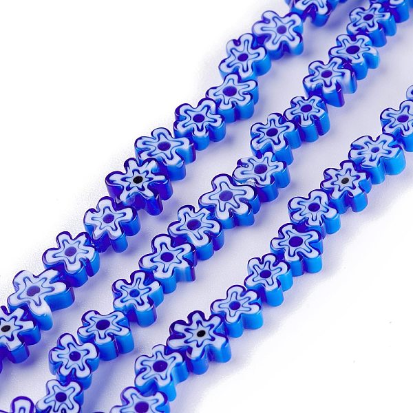 PandaHall Handmade Millefiori Glass Bead Strands, Flower, Medium Blue, 7.5~9x3mm, Hole: 1mm, about 55~57pcs/strand, 15.55 inch~15.94 inch... Price: $21.21 | PandaHall