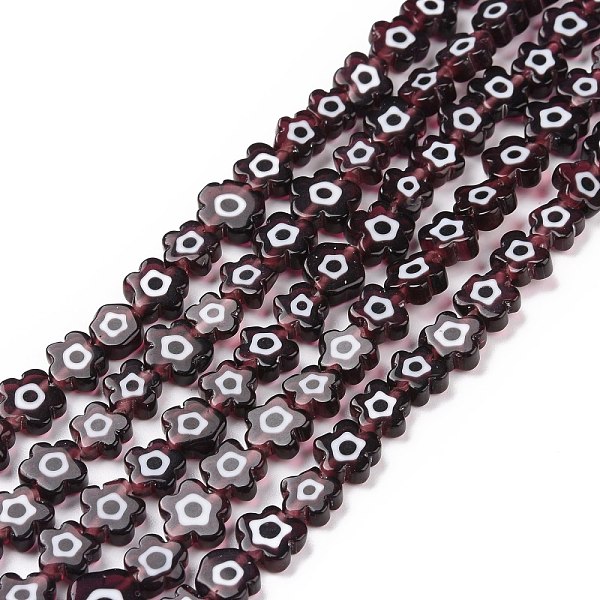 PandaHall Handmade Millefiori Glass Bead Strands, Flower, Coconut Brown, 7.5~9x3mm, Hole: 1mm, about 55~57pcs/strand, 15.55 inch~15.94 inch... Price: $22.85 | PandaHall