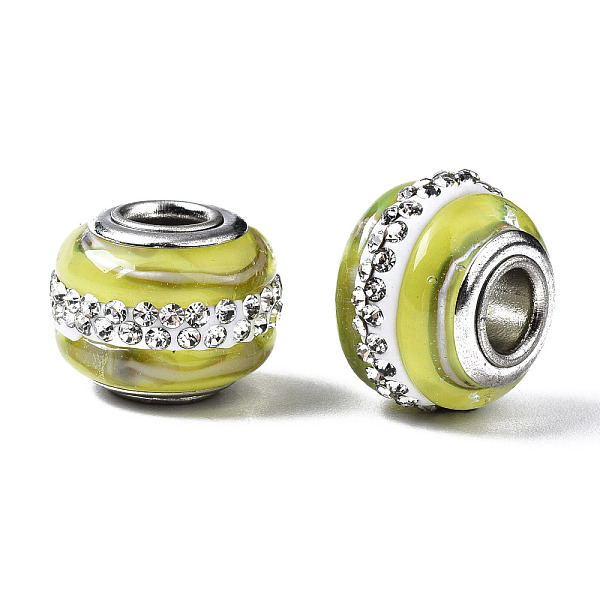 PandaHall Handmade Lampwork European Beads, with Polymer Clay Rhinestone, Large Hole Rondelle Beads, with Platinum Tone Brass Double Cores... Price: $21.21 | PandaHall