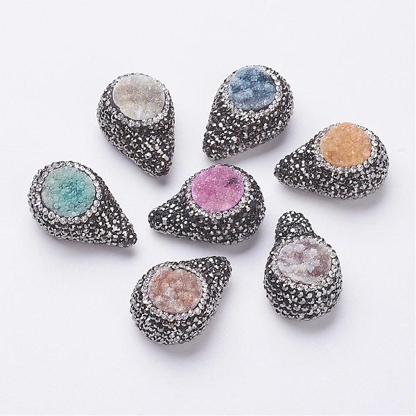 PandaHall Handmade Polymer Clay Rhinestones Beads, with Natural Druzy Agate, teardrop, 28~30x19~20x13.5~14.5mm, Hole: 1mm Natural Agate... Price: $28.83 | PandaHall