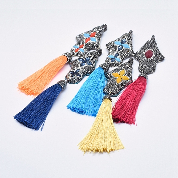 PandaHall Handmade Snakeskin Leather Polymer Clay Rhinestone Tassel Pendants, with Brass Findings and Glass Cabochons, Gunmetal, Hamsa... Price: $58.74 | PandaHall