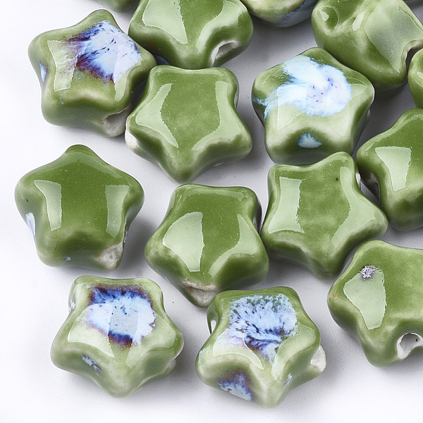 PandaHall Handmade Porcelain Beads, Fancy Antique Glazed Porcelain, Star, Green, 15~16x15.5~17x12~12.5mm, Hole: 2~2.5mm Porcelain Star Green Price: $15.5 | PandaHall