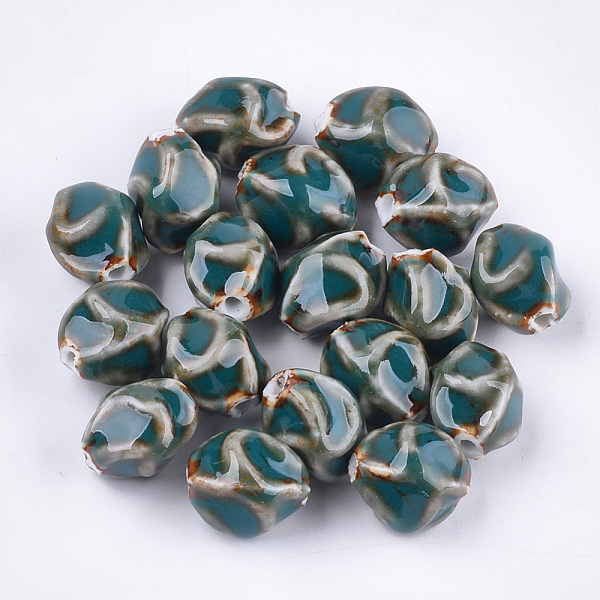 PandaHall Handmade Porcelain Beads, Fancy Antique Glazed Porcelain, Round, Teal, 11~12x10~11x10~10.5mm, Hole: 2~2.5mm Porcelain Round Cyan Price: $6.14 | PandaHall