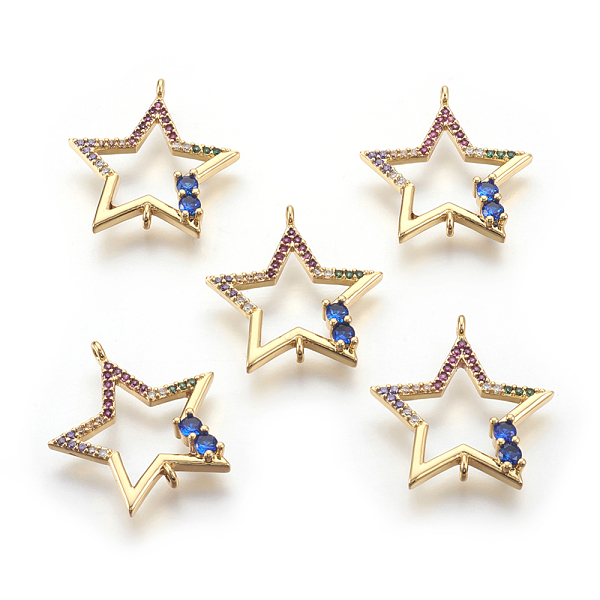 PandaHall Brass Micro Pave Cubic Zirconia Links, Lead Free & Cadmium Free & Nickel Free, Star, Hollow, Real 18K Gold Plated, 19.5x21x3mm... Price: $2.92 | PandaHall