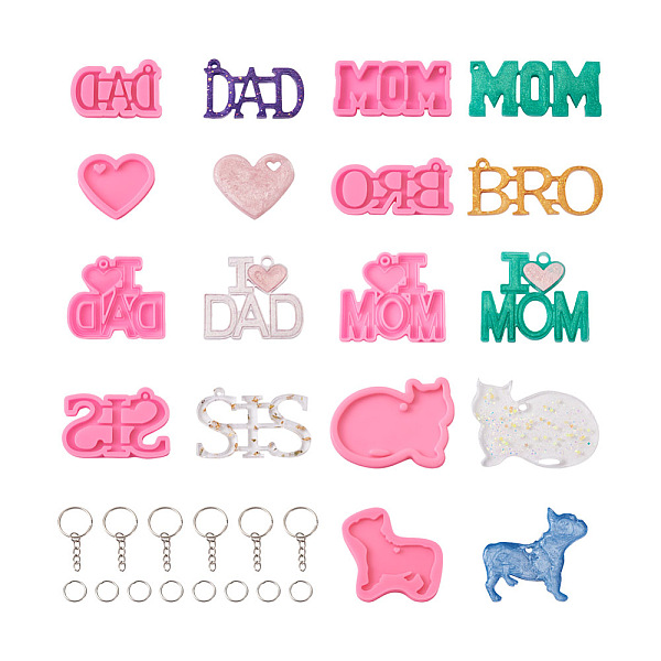 PandaHall DIY Keychain Silicone Molds Kits, with Peg Silicone Pendant Molds, Iron Keychain Clasp Findings, Brass Open Jump Rings, Pearl Pink... Price: $6.83 | PandaHall