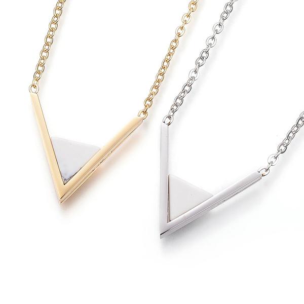 PandaHall 304 Stainless Steel Pendant Necklaces, with Lobster Claw Clasps and Synthetic Turquoise, Cable Chains, V Shape, Mixed Color, 16.9... Price: $16.15 | PandaHall