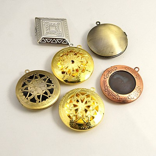 PandaHall Brass Locket Pendants, Photo Frame Charms for Necklaces, Mixed Shapes, Mixed Color, 22~32x20~28x5~6.5mm, Hole: 2mm Brass Mixed... Price: $22.85 | PandaHall