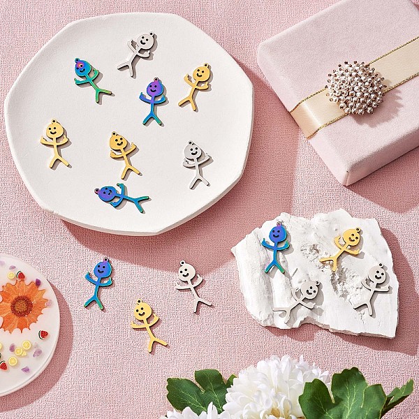 PandaHall 15Pcs Human Shape Charm Pendant Rainbow Stainless Steel Charm Mixed Colorful for Jewelry Necklace Earring Making Crafts, Mixed... Price: $7.26 | PandaHall