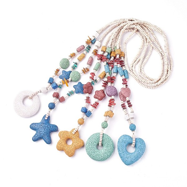 PandaHall Natural Lava Rock Pendant Necklaces, with Wood Beads, Mixed Shapes, Mixed Color, 30.7~31.8 inch'(78~81cm), 4.5mm Lava Rock... Price: $21.7 | PandaHall
