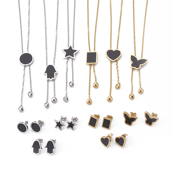 PandaHall 304 Stainless Steel Jewelry Sets, with Resin, Pendant Necklaces and Stud Earrings, Mixed Shapes, Black, Mixed Color, 17.71... Price: $66.9 | PandaHall