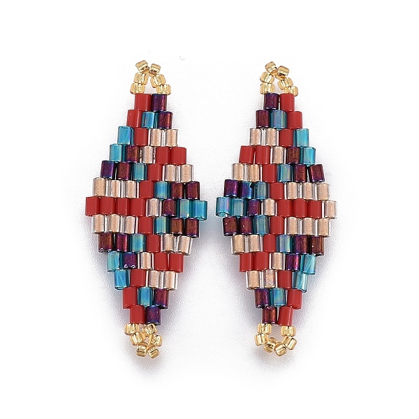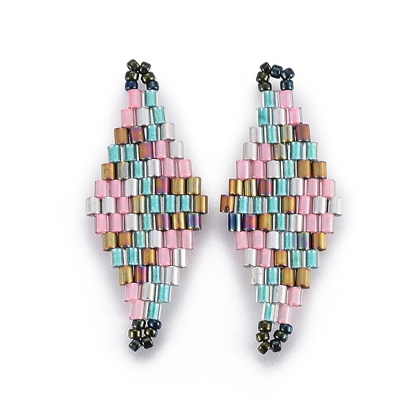 PandaHall MIYUKI & TOHO Handmade Japanese Seed Beads Links, Loom Pattern, Rhombus, Colorful, 44.6~45.2x17.8~18.6x1.6~1.7mm, Hole: 1.4~1.6mm... Price: $7.52 | PandaHall