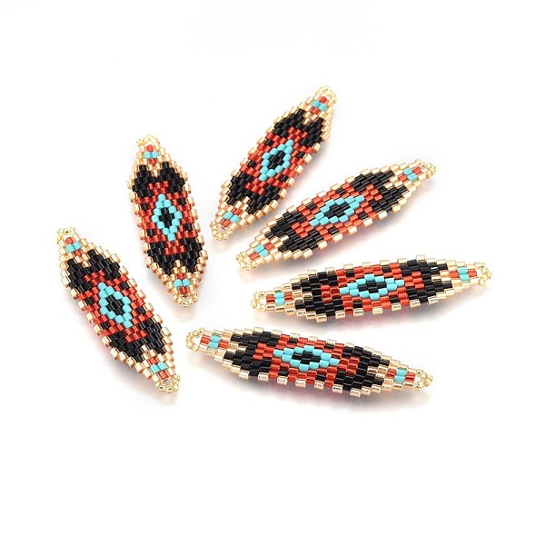 PandaHall MIYUKI & TOHO Handmade Japanese Seed Beads Links, Loom Pattern, Rhombus, Colorful, 60~61x24.5~25x1.7mm, Hole: 1.6mm Glass Rhombus Price: $11.75 | PandaHall