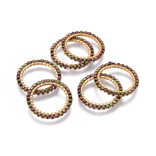 PandaHall MIYUKI & TOHO Handmade Japanese Seed Beads, with Golden Plated 304 Stainless Steel Link Rings, Loom Pattern, Ring/Circle, Dark... Price: $3.45 | PandaHall