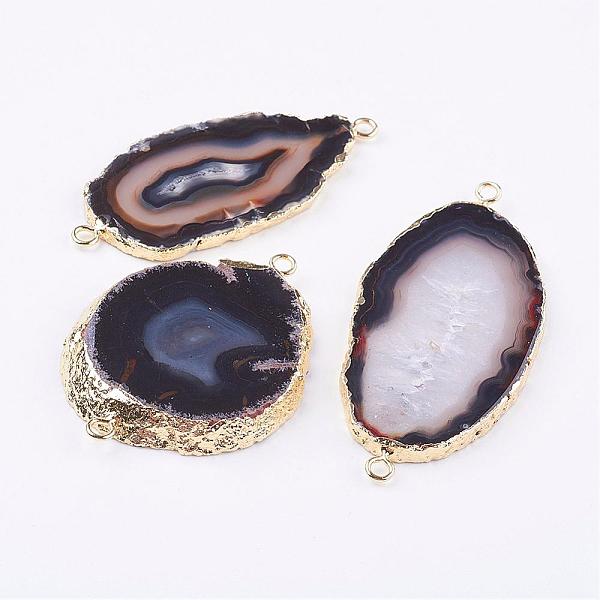 PandaHall Natural Agate Links connectors, with Edge Golden Plated Iron Loops, Nuggets, 44~56x13~15x4.5~7mm, Hole: 2mm Natural Agate Nuggets Price: $11.13 | PandaHall
