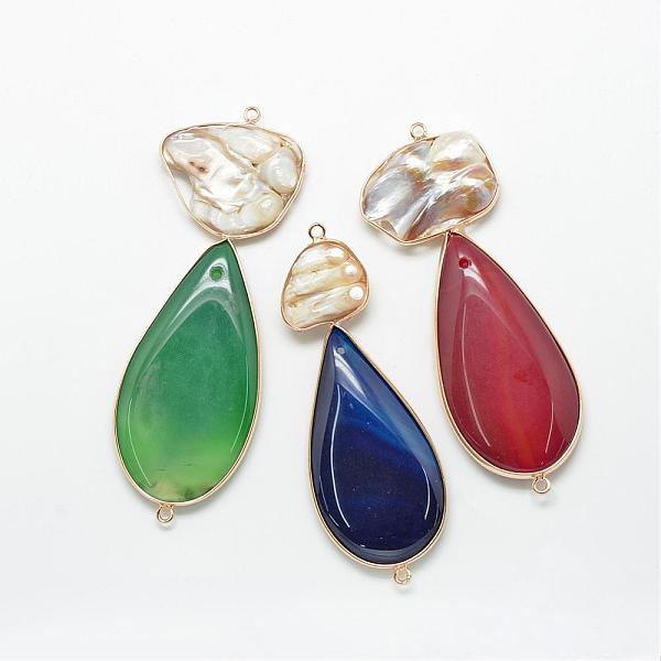 PandaHall Natural Agate Links connectors, with Pearl Beads and Golden Tone Brass Findings, Dyed, teardrop, Mixed Color... Price: $13.69 | PandaHall