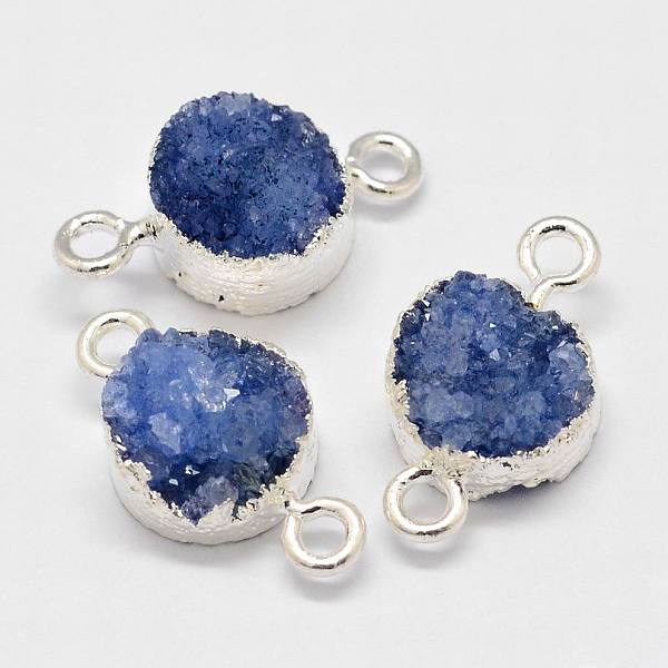 PandaHall Electroplated Natural & Dyed Druzy Agate Links connectors, with Silver Color Plated Brass Findings, Flat Round, Royal Blue... Price: $10.81 | PandaHall
