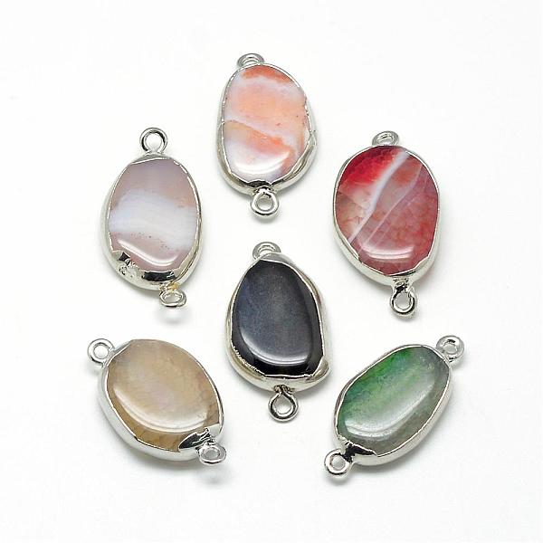 PandaHall Natural Agate Links connectors, with Brass Findings, Dyed, Oval, Platinum, Mixed Color, 32~35x16~20x6~8mm, Hole: 2mm Natural Agate... Price: $10.27 | PandaHall