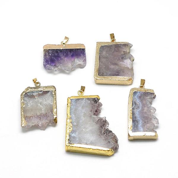 PandaHall Natural Druzy Amethyst Big Pendants, Large Hole Pendants, with Light Gold Tone Brass Findings, Cadmium Free & Lead Free, Rectangle... Price: $16.74 | PandaHall