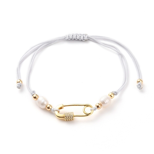 PandaHall Adjustable Nylon Thread Braided Bracelets, with Natural Baroque Pearl Keshi Pearl Beads, Brass Beads and Brass Micro Pave Cubic... Price: $14.7 | PandaHall