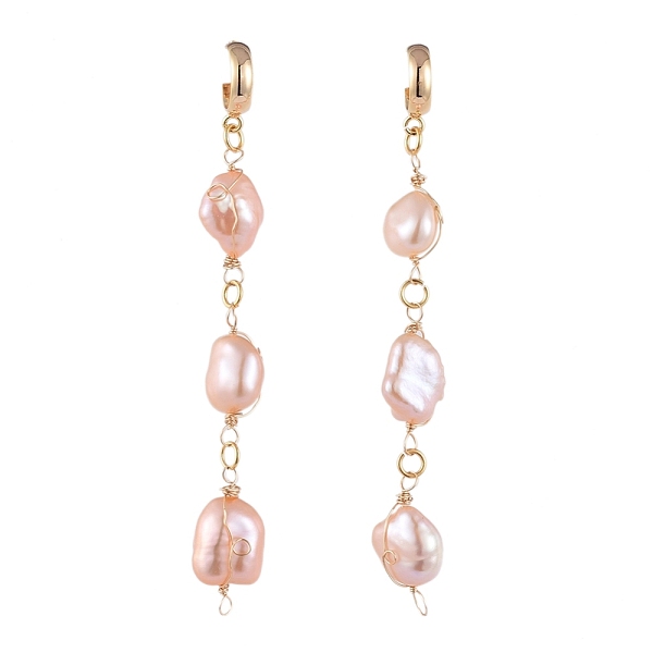 PandaHall Wire Wrapped Natural Baroque Pearl Keshi Pearl Dangle Earrings, with Brass Earring Hooks, Rectangle, Seashell Color, Real 18K Gold... Price: $15.89 | PandaHall
