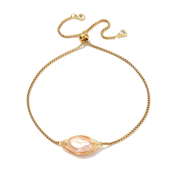 PandaHall Natural Baroque Pearl Keshi Pearl Necklace for Girl Women, 304 Stainless Steel Venetian Chain Slider Bracelet, Golden, PeachPuff... Price: $26.72 | PandaHall