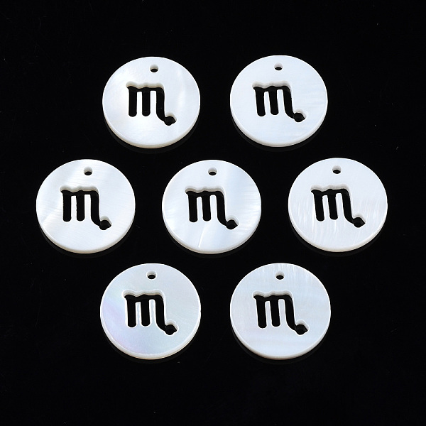 PandaHall Natural Freshwater Shell Charms, Flat Round with Twelve Constellations, Hollow, Scorpio, 12x1.5mm, Hole: 0.9mm Freshwater Shell... Price: $6.53 | PandaHall