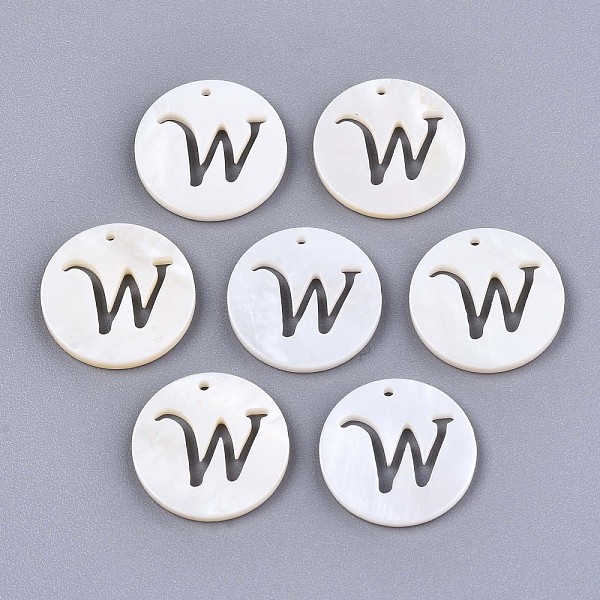 PandaHall Natural Freshwater Shell Charms, Flat Round with Hollow Out Letter, Letter. W, 14.5x1.5mm, Hole: 0.9mm Freshwater Shell Letter W Price: $21.21 | PandaHall