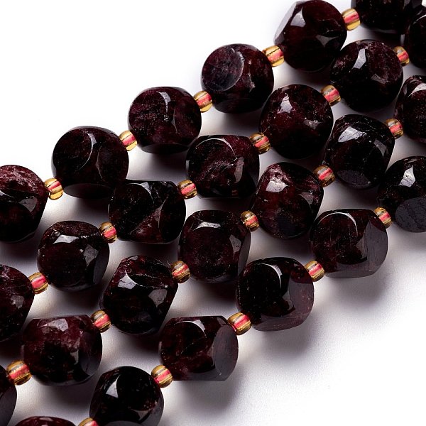 PandaHall Natural Garnet Beads Strands, with Seed Beads, Faceted, Diagonal Cube Beads, 5~6x5~6x4~5mm, Hole: 1mm, about 49~55pcs/strand... Price: $15.08 | PandaHall