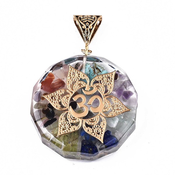 PandaHall Transparent Epoxy Resin Alchemy Pendants, with Natural Gemstone Chip, Gold Foil, Flat Round with Om Symbol, Colorful... Price: $26.11 | PandaHall