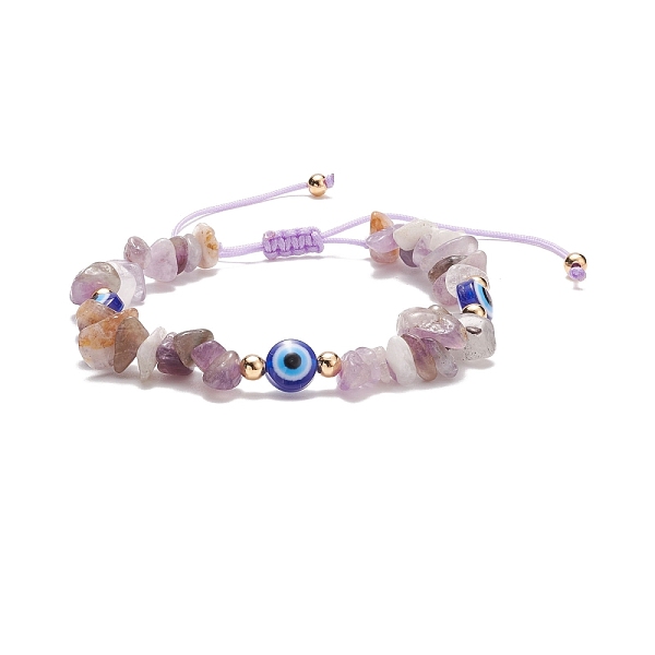 PandaHall Natural Amethyst Chips & Resin Evil Eye Braided Bead Bracelet, Gemstone Adjustable Bracelet for Women, Inner Diameter: 2~3-1/2... Price: $16.41 | PandaHall