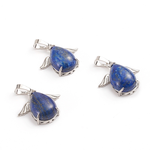 PandaHall Natural Lapis Lazuli Pendants, with Platinum Tone Brass Cabochons Settings, teardrop, with Wing, 23~23.5x25x8~9mm, Hole: 8x5mm... Price: $4.9 | PandaHall