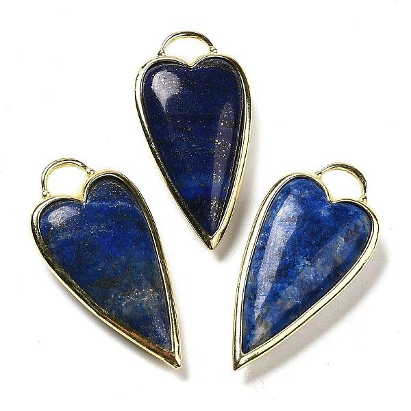 PandaHall Natural Lapis Lazuli Pendants, Rack Plating Brass Heart Charms, Golden, 38x19x7.3~7.8mm, Hole: 4.7x6.5mm Lapis Lazuli Heart Price: $16.32 | PandaHall