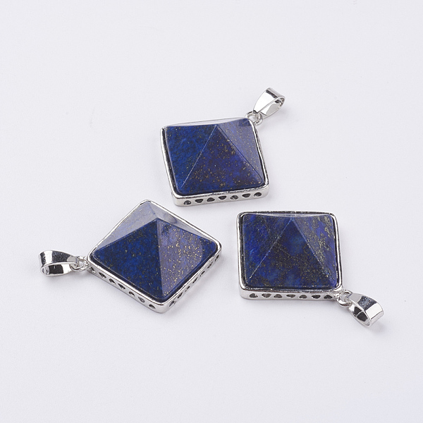 PandaHall Natural Lapis Lazuli Pendants, with Brass Findings, Rhombus, Platinum, 25x29x7mm, Hole: 5x7mm, 18x18mm Lapis Lazuli Rhombus Price: $11.42 | PandaHall