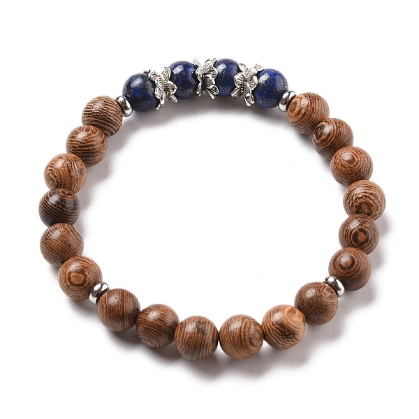 PandaHall Stretch Bracelets, with Round Natural Lapis Lazuli Beads, Natural Wood Beads, Alloy Bead Caps and 304 Stainless Steel Spacer Beads... Price: $14.93 | PandaHall
