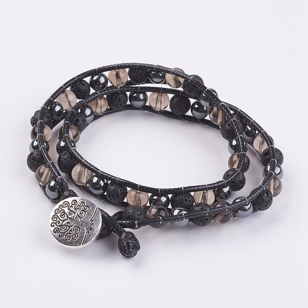 PandaHall Natural Lava Rock and Smoky Quartz and Hematite Beads Wrap Bracelet, with Tibetan Style Clasp, Flat Round with Tree of Life... Price: $13.73 | PandaHall