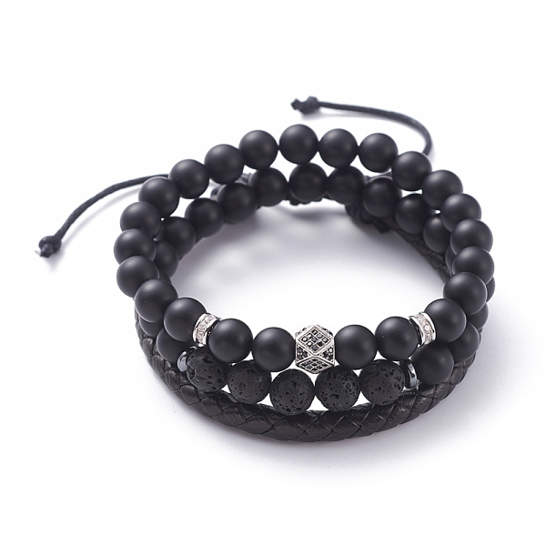 PandaHall Natural Lava Rock Beads Stretch Bracelets, with Natural Black Agate(Dyed), Brass Cubic Zirconia Round Beads and Alloy Findings... Price: $11.48 | PandaHall
