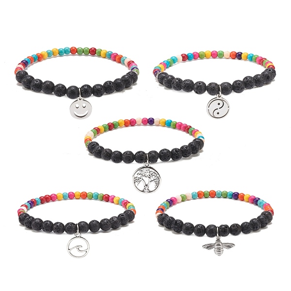PandaHall Natural Lava Rock & Synthetic Turquoise(Dyed) Stretch Bracelet with Alloy Charm, Essential Oil Gemstone Jewelry for Women, Mixed... Price: $19.13 | PandaHall