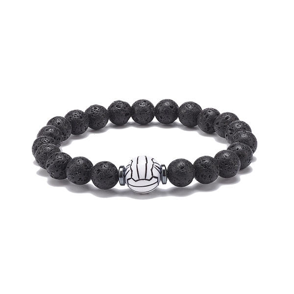PandaHall Natural Lava Rock & Synthetic Hematite & Acrylic Beaded Stretch Bracelet, Essential Oil Gemstone Jewelry for Men Women, Volleyball... Price: $14.35 | PandaHall