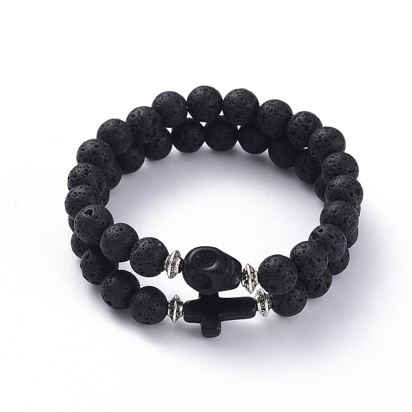 PandaHall Synthetic Turquoise Beads Stretch Bracelets, with Natural Lava Rock Beads, Round and Cross, 2 inch(5.1cm) Lava Rock Black Price: $0.72 | PandaHall