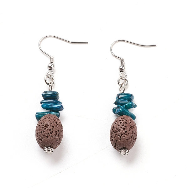 PandaHall Natural Lava Rock Dangle Earrings, with Synthetic Gemstones, Alloy Spacer Beads and Stainless Steel Earring Hooks, Oval, Coconut... Price: $14.69 | PandaHall